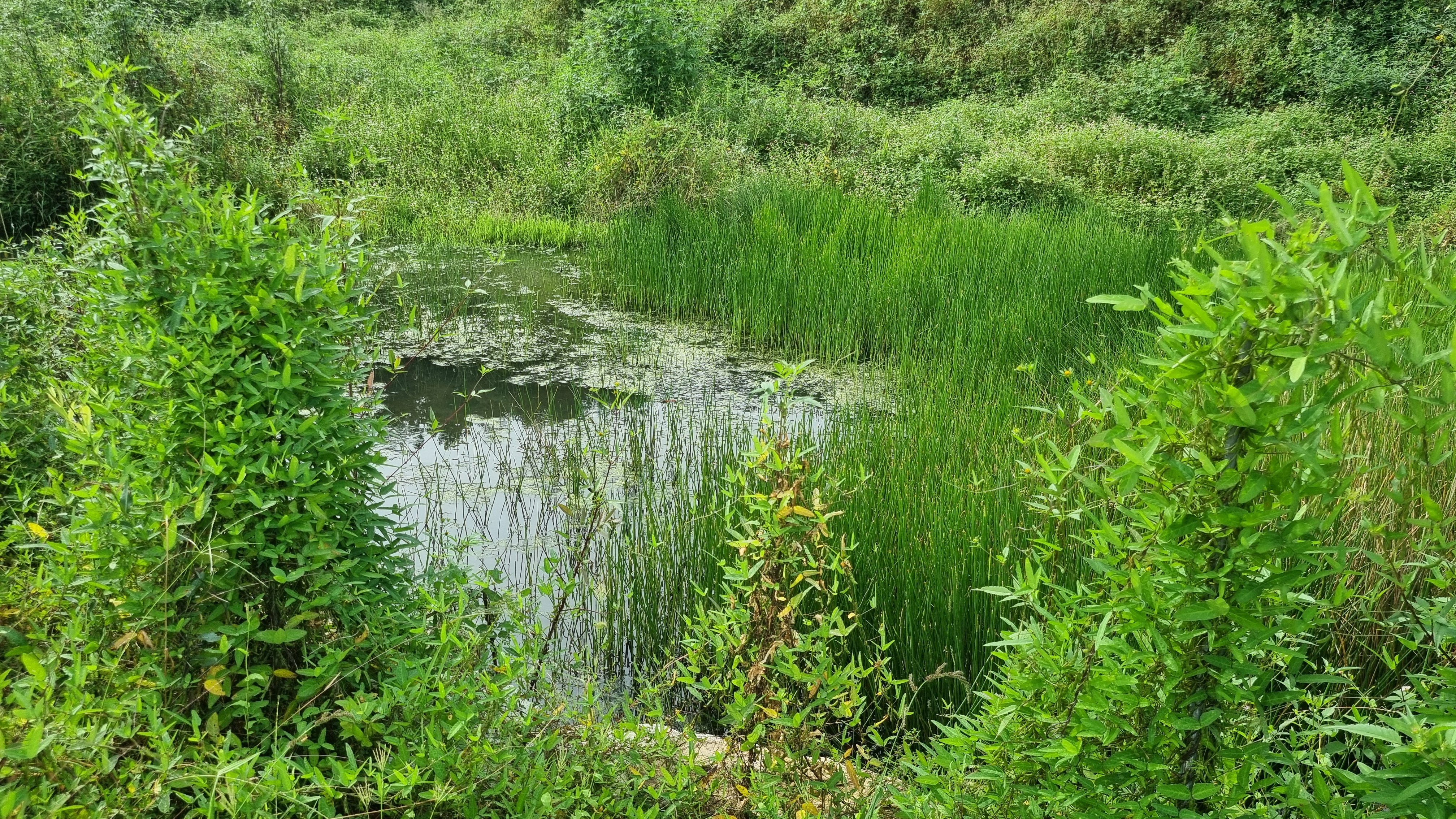 우리 논 가장자리의 생태연못입니다.