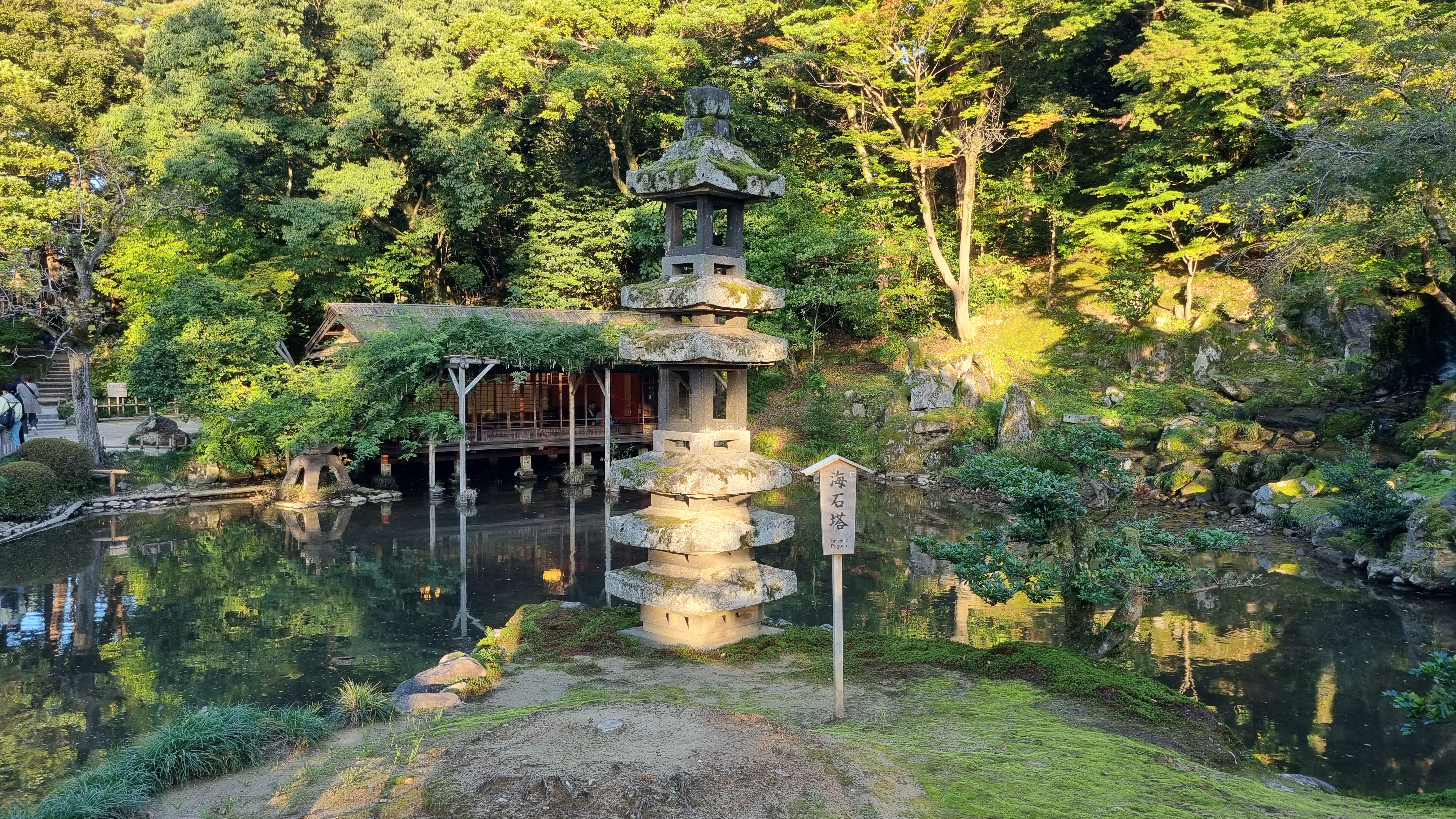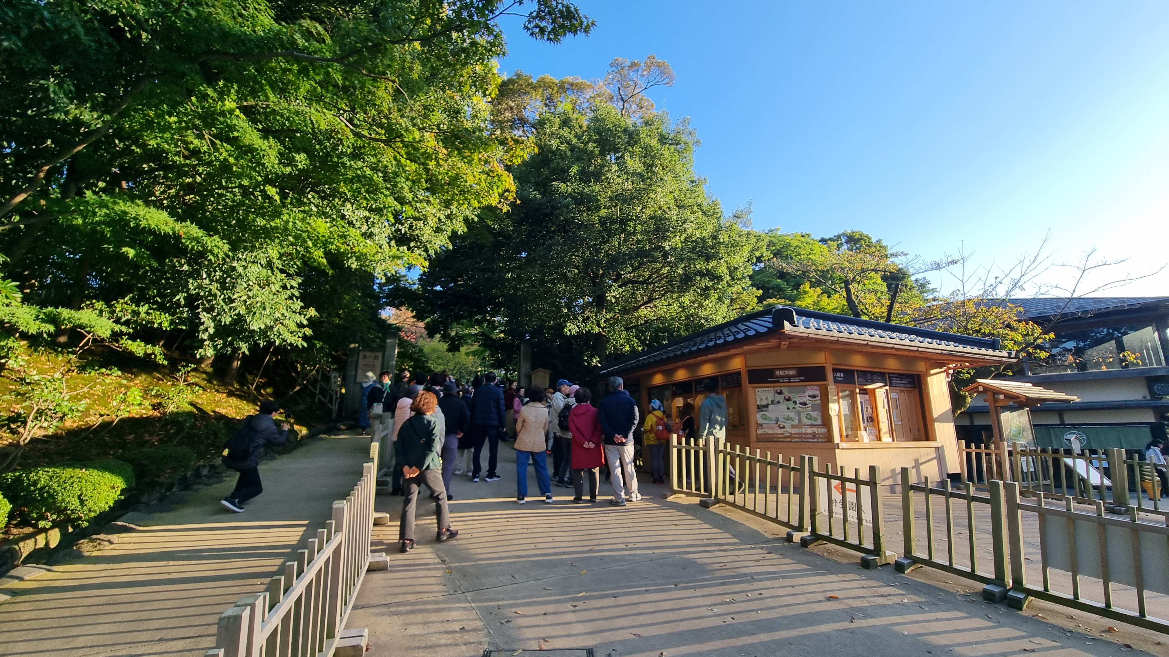 특징:으로 에도 시대에 가가 번을 다스렸던 마에다 가문이 수백 년에 걸쳐 조성한 임천회유식(林泉回遊式) 산수 정원으로, 넓은 땅에 연못, 언덕, 정자 등을 배치하여 산책하며 경치를 감상하도록 만들어졌습니다.