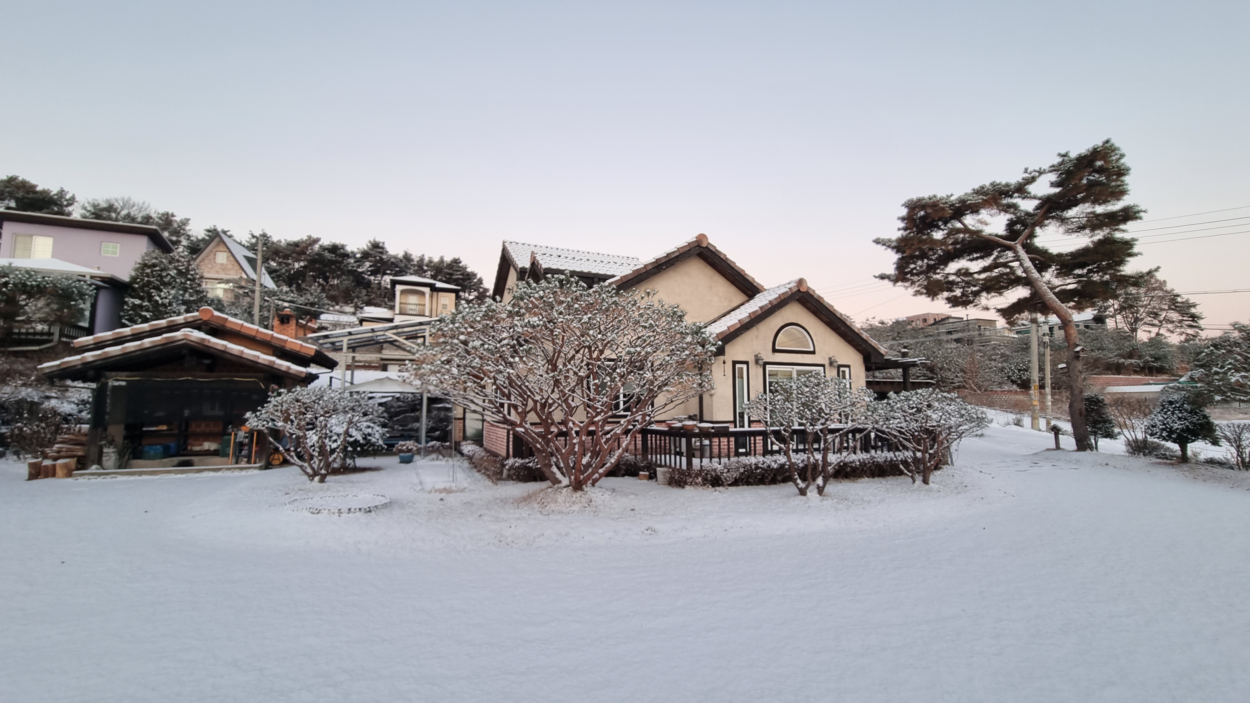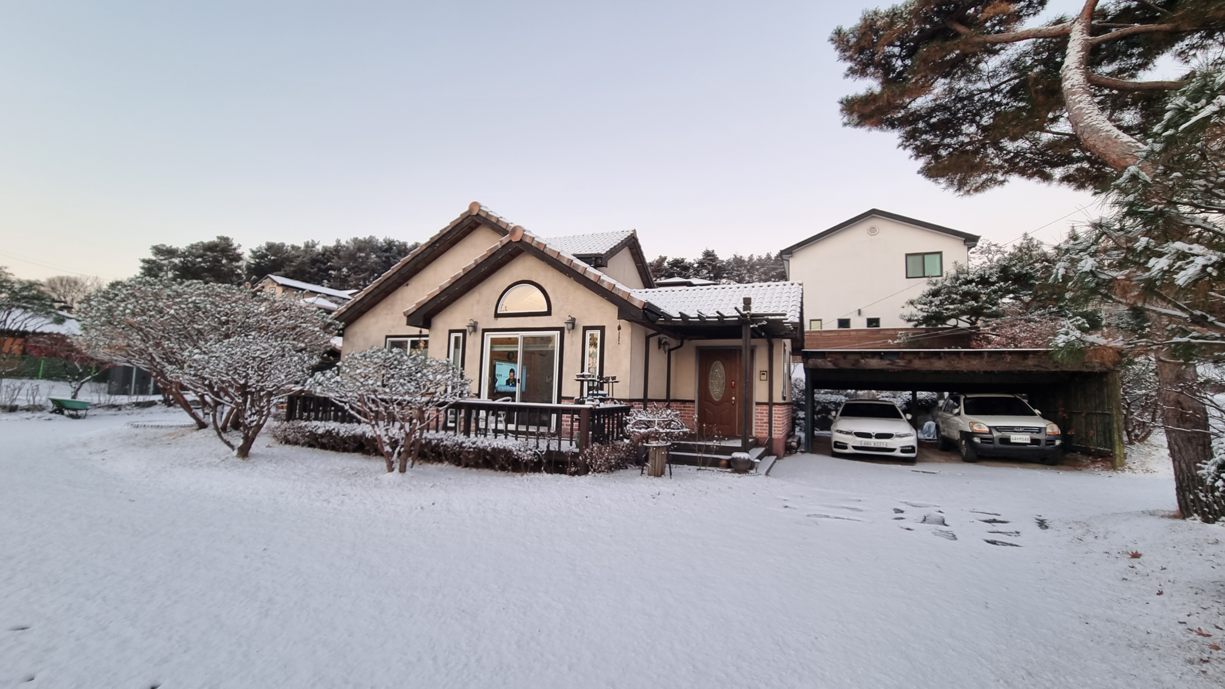 2025.12.5. 첫눈이 소복이 내려앉은 우리 집은 마치 동화 속 한 장면 같기도 합니다. 지붕과 마당을 덮은 하얀 눈이 포근한 이불처럼 집 전체를 감싸 안았습니다. 앙상한 가지 위에도 눈꽃이 피어, 겨울의 고요한 아름다움을 잔잔히 속삭이는 듯합니다. 낮게 깔린 햇살 아래, 눈 덮인 정원은 시간이 멈춘 듯 평화로운 정취를 자아냅니다. 이 아름다운 풍경은 올 겨울을 오래도록 기억하게 할 감성적인 선물됩니다.